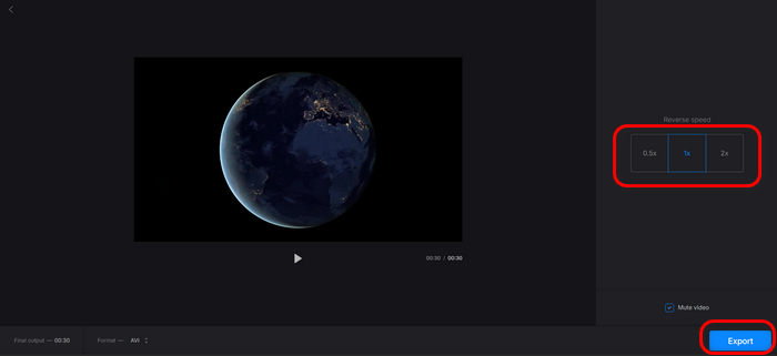 Step 2Your video will be reversed automatically. You can also choose to keep the original audio track or mute the audio. Then, click the EXPORT button to reverse the video free online and download it to your computer.
