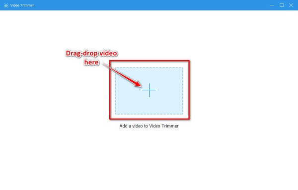 Step 3 Next, tick the plus sign button in the middle of the interface to add the video you want to trim. Another way of uploading a video is by dragging and dropping your file to the plus sign box.