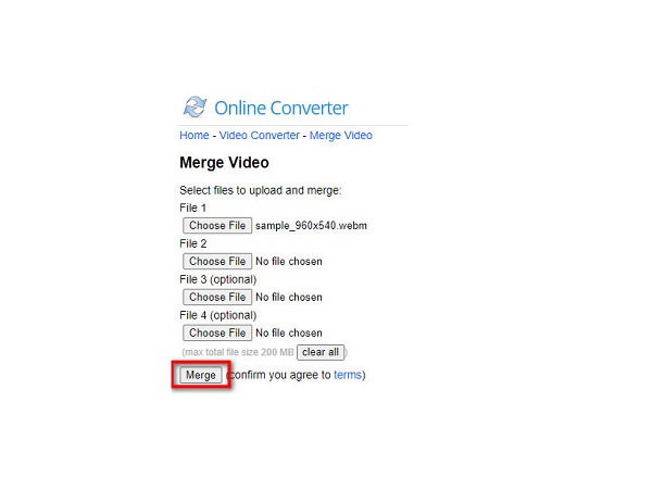 Online Converter.com is an online video converter. But many users do not know that it also has a video merge feature. It can merge video clips with ASF, AVI, MP4, 3GP, MKV, WMV, and FLV file formats. Moreover, you can access this tool on all web browsers, such as Google, Firefox, and Safari. The downside of this tool is that it has a hard-to-operate interface.