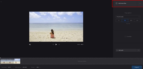 Step 2Then, you will see your video on the preview and on the Timeline. Click the Add more files option on the right side of the interface to upload another video.
