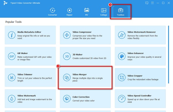 Step 2Once you open the app, go to the Toolbox panel, and select the Video Merger option.