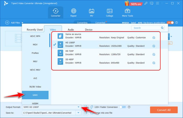 When choosing the most suitable software to convert MOV to WMV, the audience can highlight Tipard Video Converter Ultimate. Intuitive design, high file conversion speed, and powerful instruments make this solution suitable for novices and experienced users. In contrast to most tools, Tipard provides an all-encompassing solution, so besides changing MOV to WMV, you can also perform several operations on your videos, with instant trimming, cropping, merging, and adding subtitles if necessary.