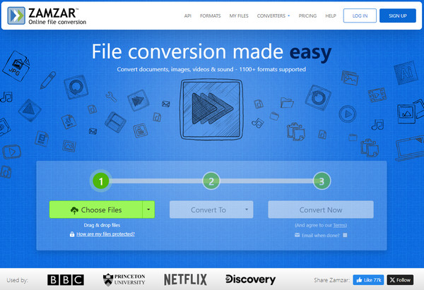 Zamzar is an online file conversion service that converts images, videos, documents, and sound. It's the only converter I recommend today that sends your converted file to your email. However, it is not as stable as the other two online converters, and it may fail to convert MTS files to MP3.