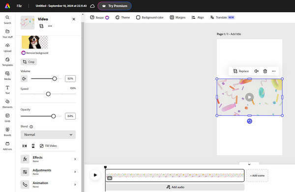Adobe Express is an excellent online tool to help you perfect your videos. You can use valuable functions that can help you get a successful result. Some functions are opacity, cropper, color adjuster, video speed changer, background remover, and more. It has a smooth editing process, making it an outstanding tool. Plus, you can preserve your videos on this platform. With that, if you want to keep your videos for a long period, it is best to access this, too.