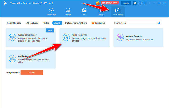 Step 2After that, go to the More Tools option and click the Noise Remover on Audio, which allows you to edit the background noise and remove it instantly.