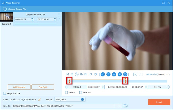 Step 5 After selecting the part that you want to trim, click the Export button at the bottom right side of the interface to save your output on your device.