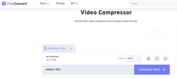 FreeConvert is a popular online video converter. but it also has a video compressor feature online. After uploading your video, you should use the Advanced Options to reduce the file size manually. This video compressor offers a controller for you to adjust the output file size, which is very convenient. This free video compressor can offer a high compression rate while maintaining excellent video quality.