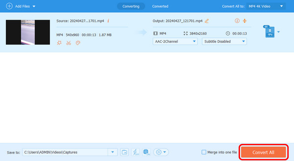 Step 4 Once you have selected the codec, click Convert All to begin the last and final conversion process. After a few moments, you can already see the final result.