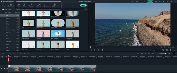Step 5You can also use some advanced features from the top interface. Some features are transitions, text, audio, elements, and effects to enhance your videos.